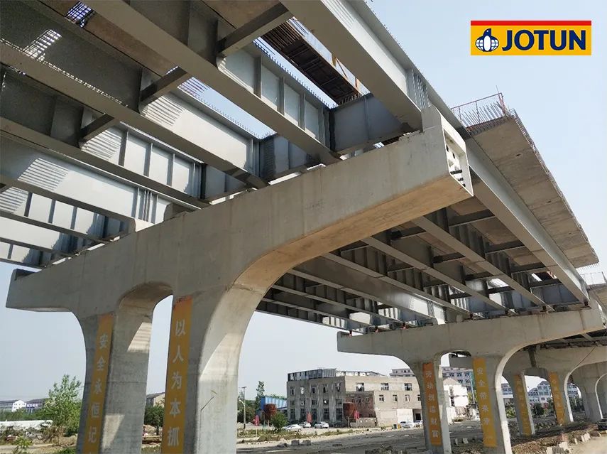 浙江臺州路澤太高架快速路項目橋梁為鋼板組合結構,全長17.5公里,全線鋼板梁共計4,200余片,是目前國內最長的鋼結構高架橋梁公路,是臺州人民期待已久的民生大通道項目。佐敦高固含品質氟碳產品為此項目提供保護,共約50萬平米涂裝面積。